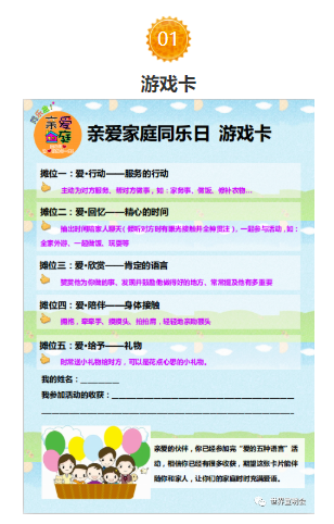“同乐盒”亲子活动指引,帮助儿童活动组织者按照“爱的5种语言”有序地开展摊位游戏活动,可以利用六一儿童节、节日假、游戏日、家长会等时间,在学校、儿童之家、儿童中心、社区等场所,招募家长/照顾者与儿童共同参加约两小时的家庭活动。