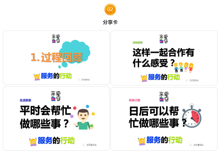 (用爱行动举个例子,回顾游戏过程,进行游戏后的分享)