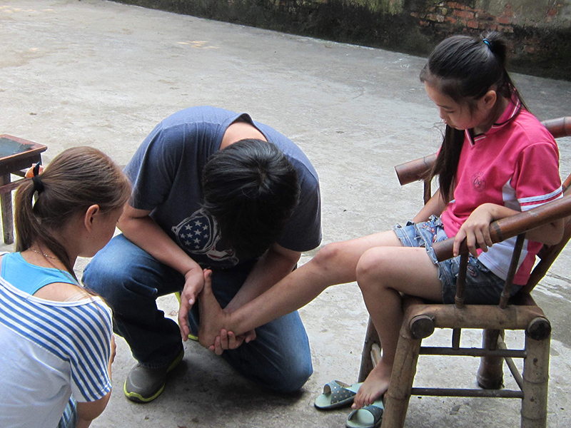 | “很多年轻的孩子,因为身体问题,被家人留在家里出不来。我觉得很可惜啊。”为了帮助这些残障的年轻人有更好的未来,Bonnie与同事深入偏远地区走访,努力联络资源,帮助这些孩子获得更好的生活。(配图为志愿者医师帮孩子检查伤患情况,但照片主角并非小韩。)
