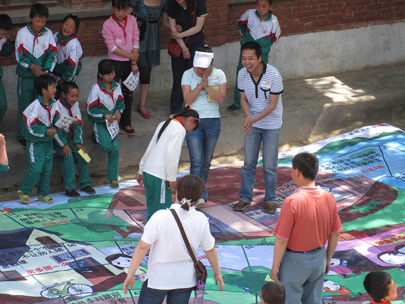 | 高伟东(第二排右一)带领儿童通过游戏掌握儿童安全知识(2009年)