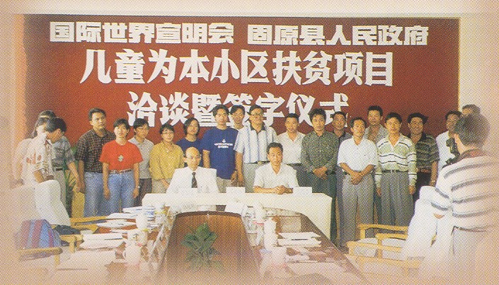 | ADP陆续在全国不同地区启动,图为Toby在1999年广西马山ADP签约仪式上(左四)