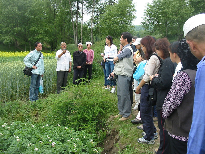 | Aman(前排右三)在临夏、东乡政府与世界宣明会的项目总结会