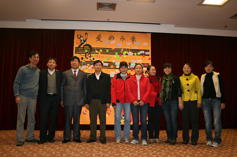 | 2009年1月,丘先生(左一)在桂黔区域全体员工会议上,与征文比赛获奖者合影。