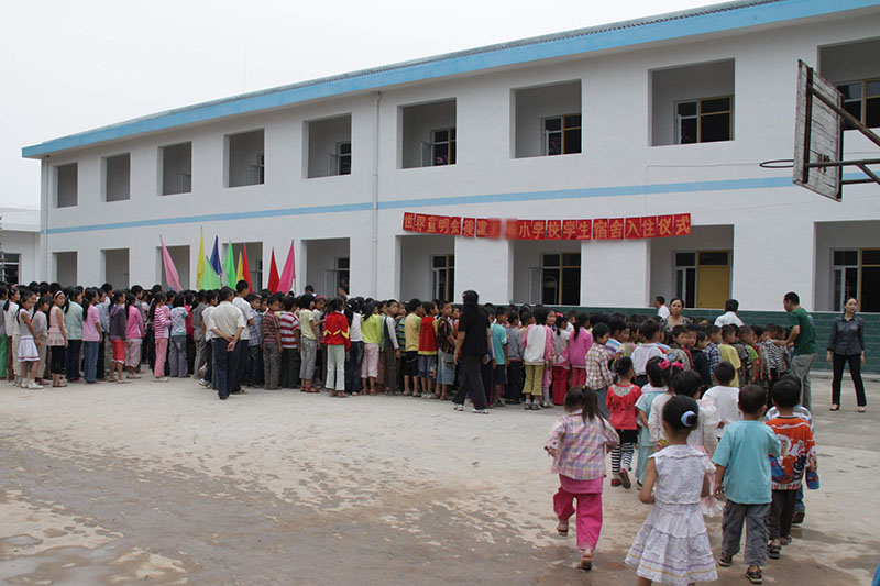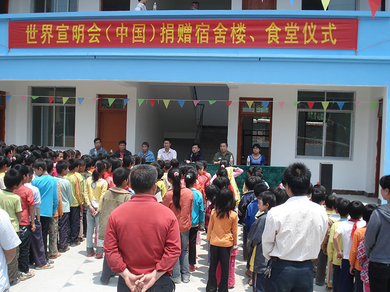| 四川广元一所小学的大部分课室和学生宿舍均在‘512汶川大地震’中被破坏,世界宣明会拨款150万人民币援建的新宿舍楼在2009年9月3日落成,帮助该校500多名老师、同学尽快恢复校园生活。