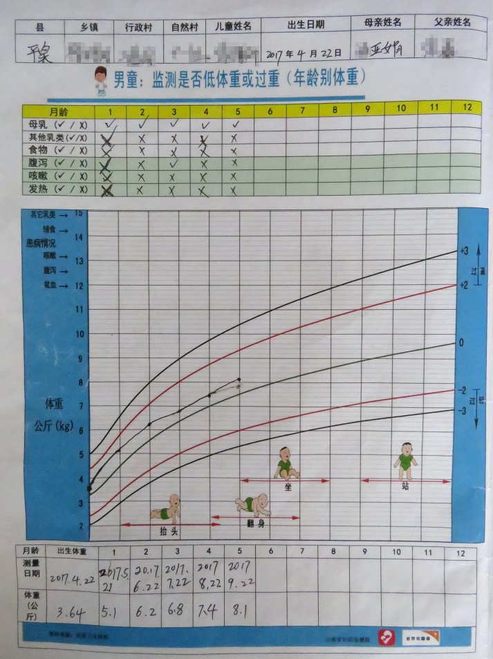 亚娟能够坚持母乳喂养得益于婆婆的理解和支持,亚娟还说:“母乳有营养,我家孩子现在体质很好,不爱生病。我亲戚家的孩子喂奶粉总拉肚子,虽然我不时髦,但我相信科学。”亚娟相信科学,她一方面看到自己孩子在纯母乳喂养6个月时不容易生病,同时也看到孩子的体重一直在最良好体重的范围(图内绿色线与上下红色线之间就是良好营养的范围,越接近绿色线就也良好)。亚娟每次看到孩子的体重良好时,都非常高兴和欣慰,她看到了努力的成果!