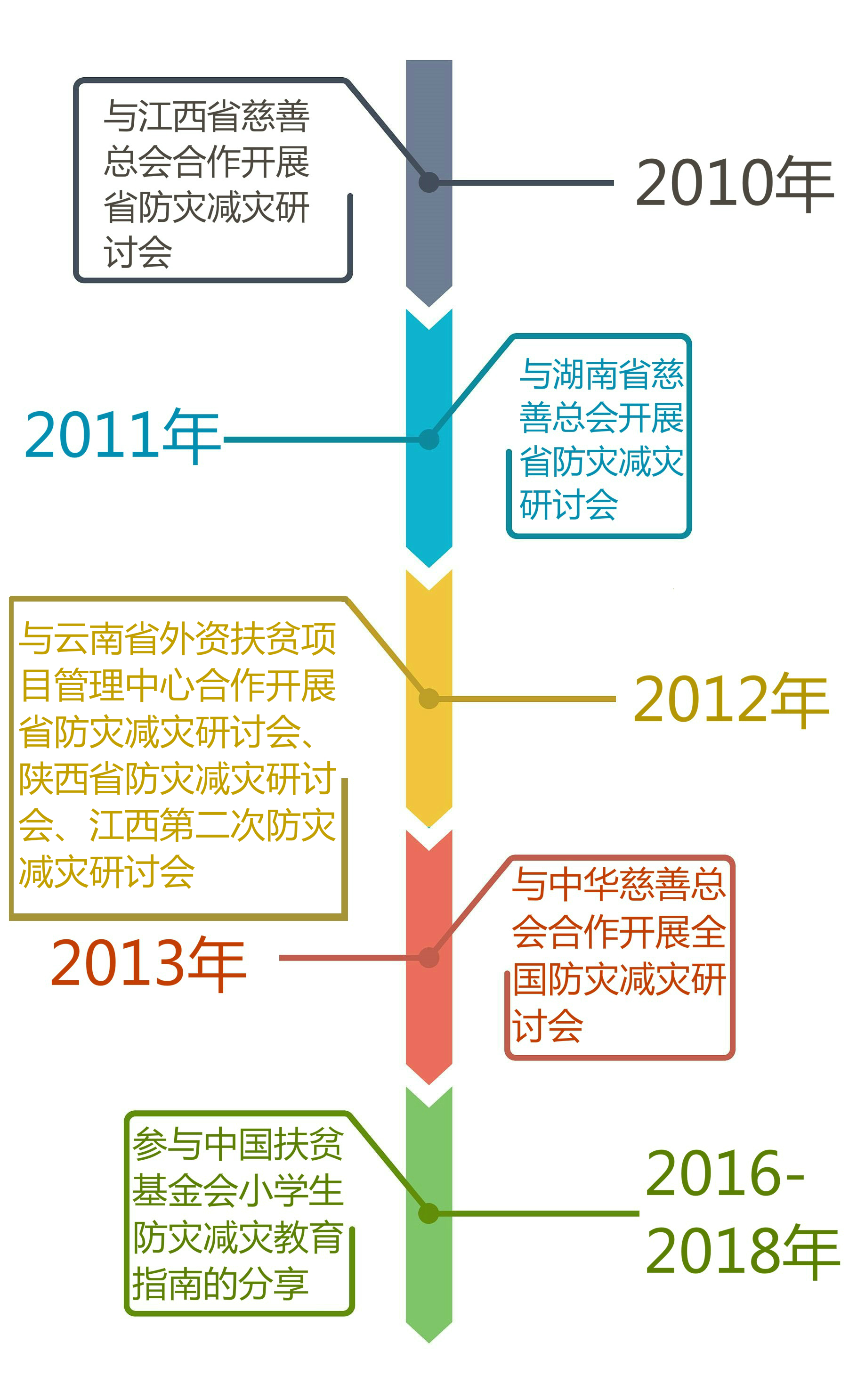 我们也针对社区开展“社区为本防灾减灾”项目。2010年开始在江西、云南、河北、陕西、甘肃、宁夏、新疆、广西、贵州、湖南、四川、云南、青海等13个省市自治区开展。
