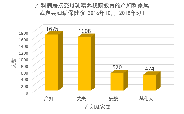 在4,277名受益者中,1,675名为产妇,而有超过90%的产妇的丈夫都看过母乳喂养视频,婆婆则只有大约五分之一。