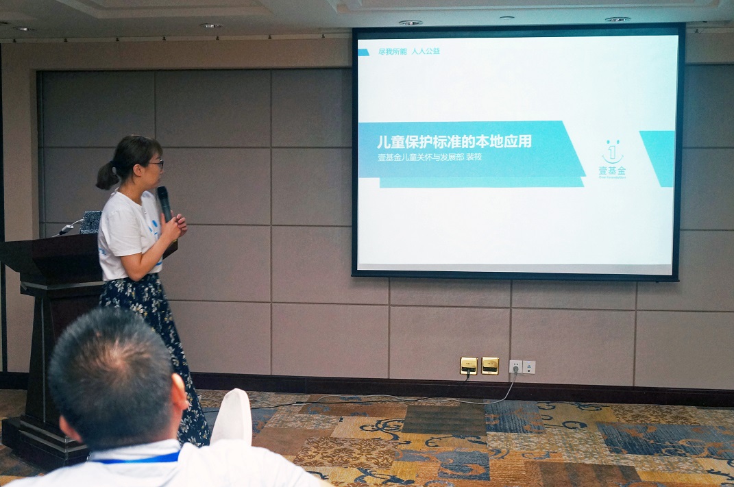 ▲壹基金裴筱正在分享儿童保护标准在中国本地的应用。