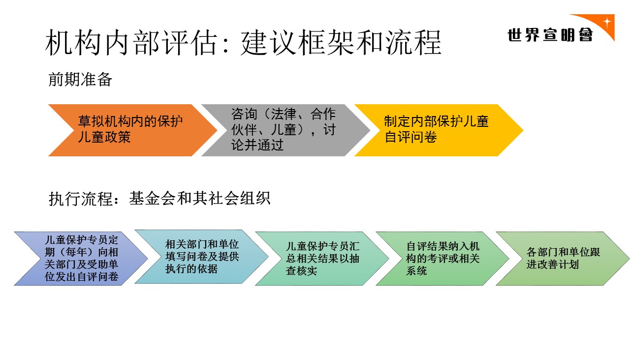 机构可以通过年度自评了解、监督儿童保护规范的落实情况。并提议将机构自我评估或者外评纳入基金会对于社会组织的拨款参考,加速社会组织儿童保护标准的落实。
