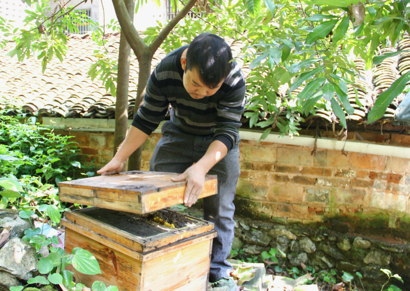 家住广西都安县偏远大山里的韦吉全在参加了中华蜂养殖培训后,领了一箱蜜蜂回村尝试养殖。他没有抱很大的期望,不管是对于保护生态,还是经济方面的收益。