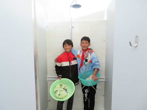 自从学校里有了洗澡间,孩子们再也不用为洗澡问题发愁了