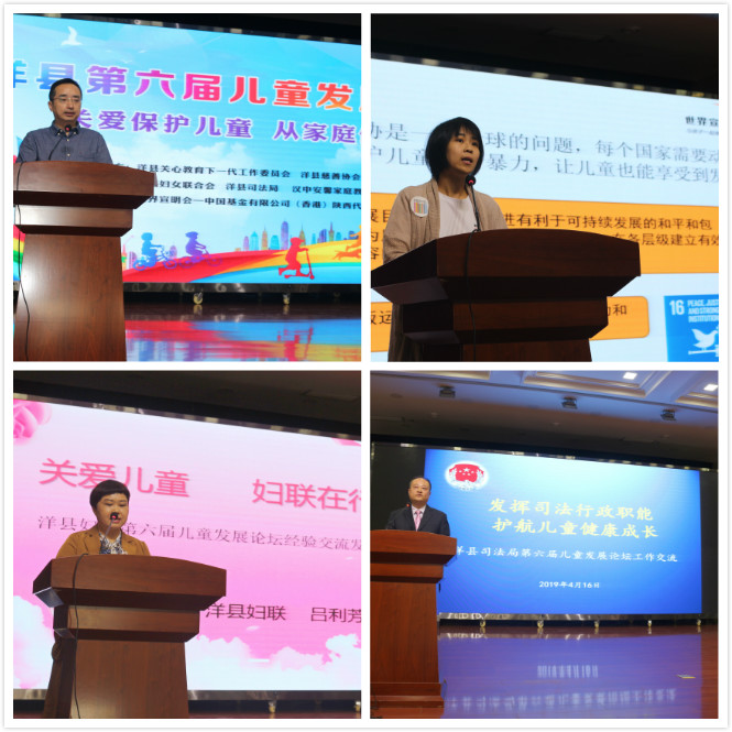 洋县第六届儿童发展论坛由洋县关工委及洋县慈善协会主办,洋县妇联会、洋县司法局承办。洋县县委常委路建侠、洋县副县长秦东汉以及县人大、县政协、县妇联、县司法局、县民政局、洋县慈善协会、世界宣明会等有关单位的领导和工作负责同志出席了论坛。国内儿童保护专家、学者,儿童代表等共约两百人汇聚一堂,共议“关爱保护儿童,从家庭做起”。