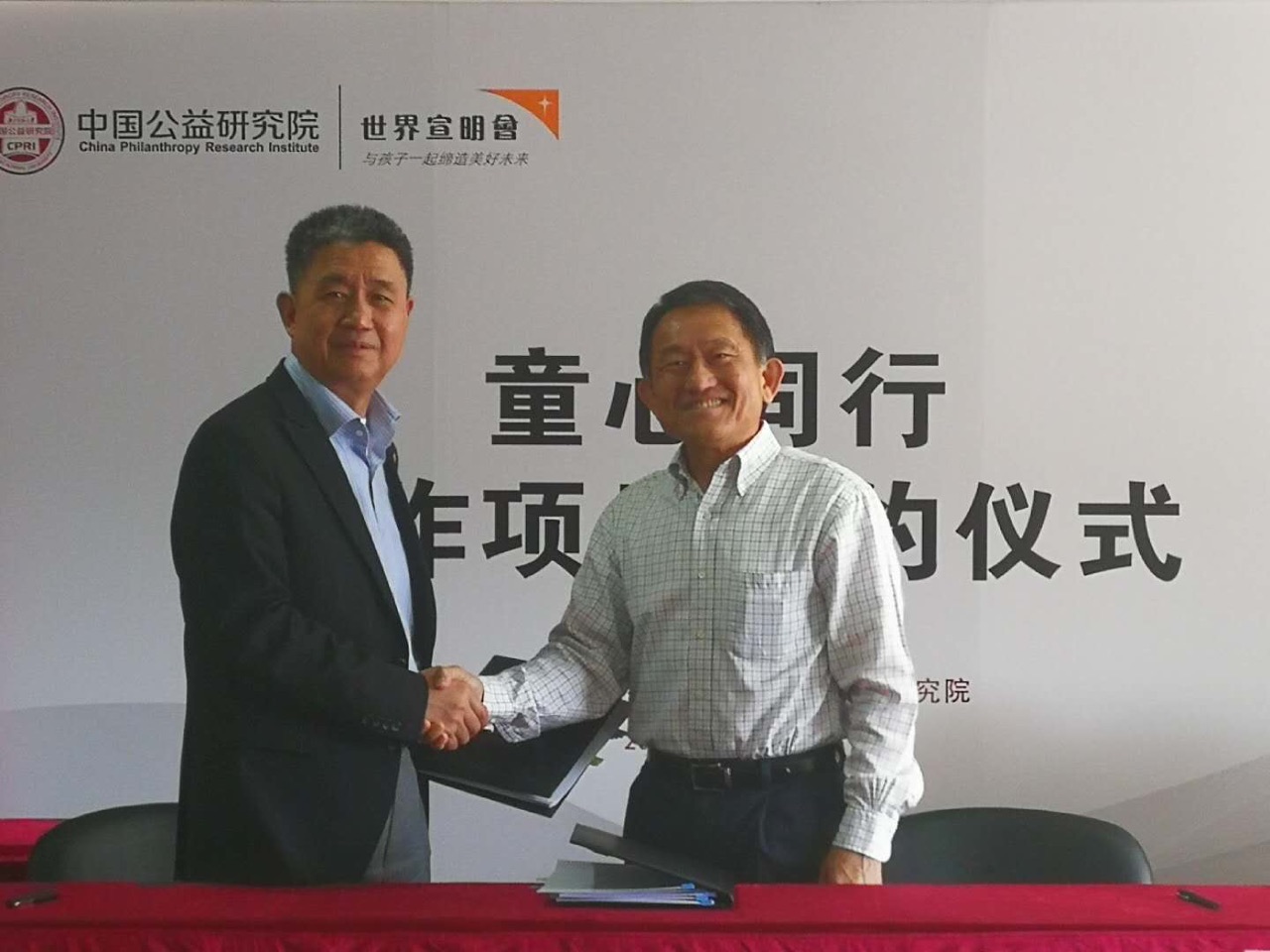 2018年4月11日,北京师范大学中国公益研究院院长王振耀先生与世界宣明会-中国总干事简祺伟先生,在北京签署“童心同行”项目合作总体框架协议,双方将在未来三年共同搭建基层儿童服务网络,开展儿童福利与保护服务的递送及相关研究,推动基层社区的儿童福利与保护服务体系建设工作。