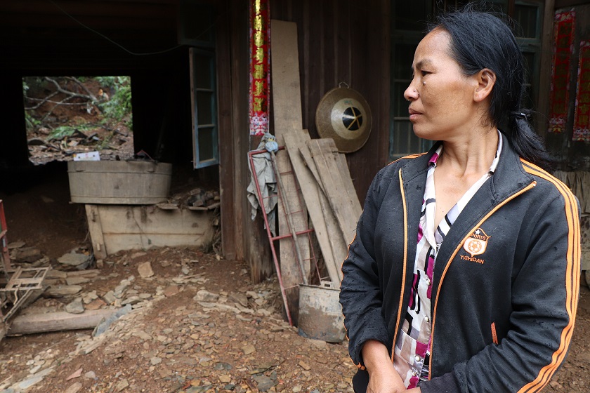 After the rainstorm lasted for over three hours, the mud on the mountain together the rain broke into her house in full fury. And she was caught unprepared. Her house, together with her hope, was shattered suddenly. She could no longer enter her house to save daily necessities. She helplessly stood in her relatives' house next door and watched the rain and the mud burying her house. "My mind went blank." When recalling what happened on the day, Huang Lixia could not help crying.