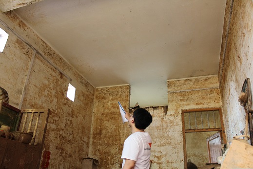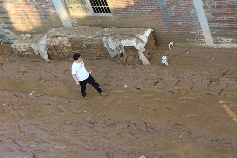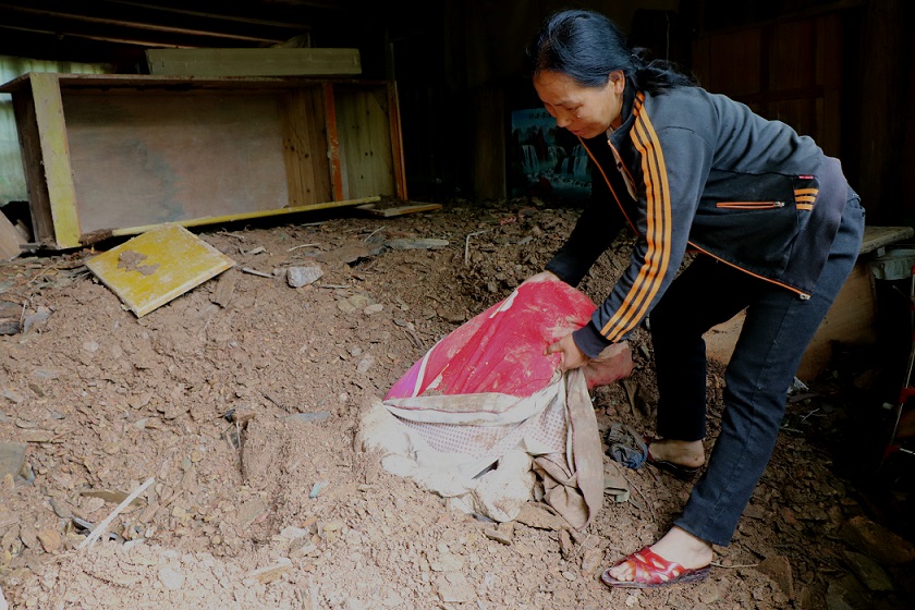 The heavy rain and the mud destroyed all the furniture and buried my house. After the rain stopped, Huang Lixia dug out clothes. She washed and dried the good clothes and threw away the bad ones. Many things were damaged.
