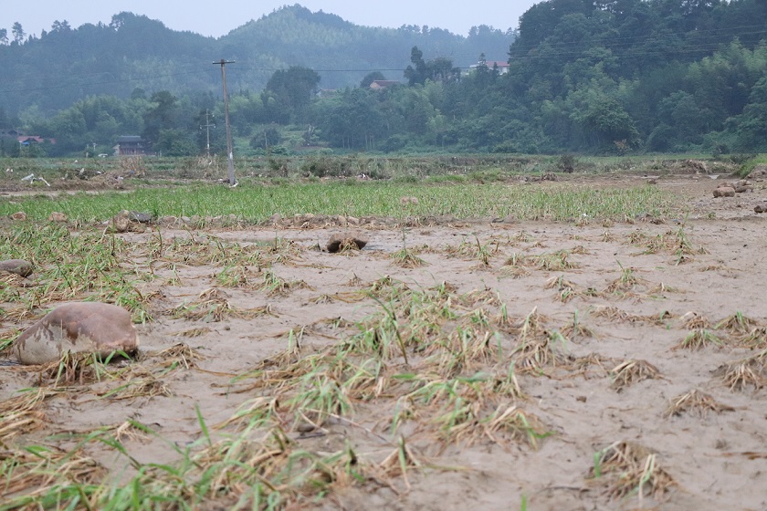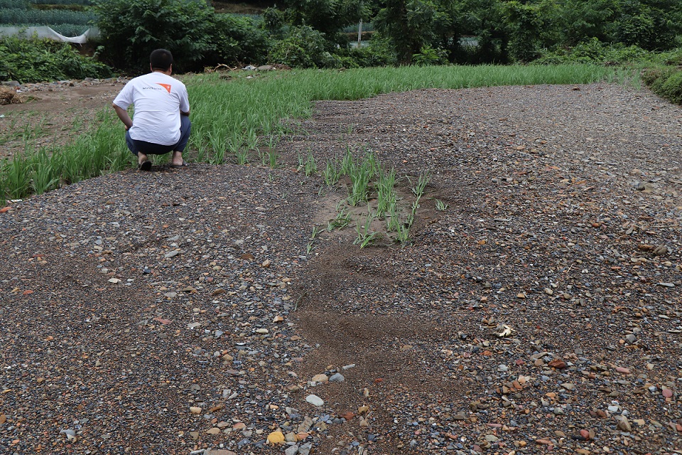 ▲ The flood pushed sand and stones to the farmland, making it difficult to plough the farmland again.