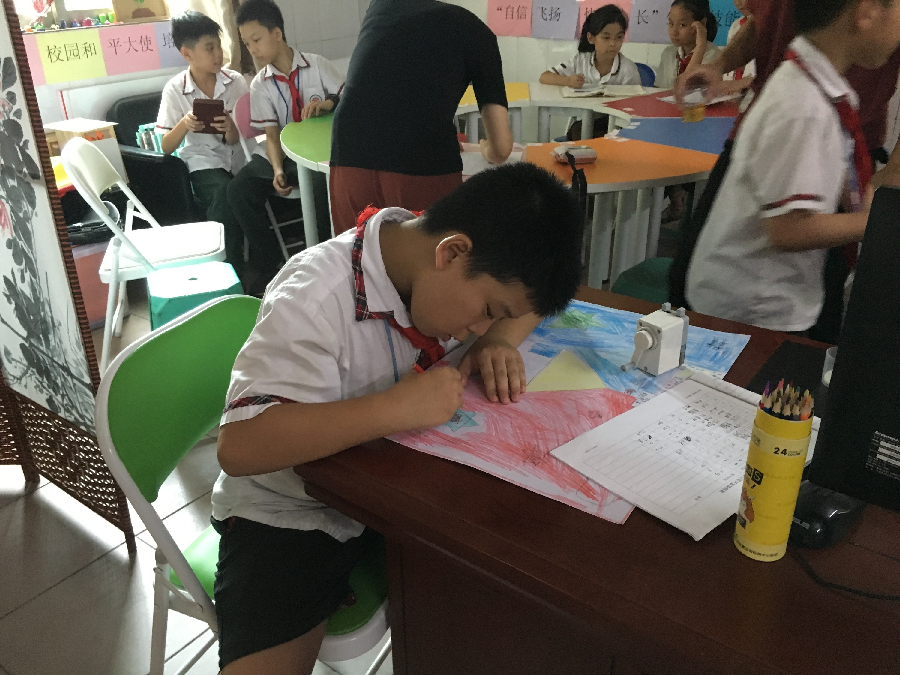 Now, Tao who's in 6th grade can get along peacefully and happily with his friends in activities. During a group activity of improvisational story generation, he even stepped out to be the first to tell a story. His story was so vivid and interesting, which has won the hearts of the audience and attracted all the attention of the group members.