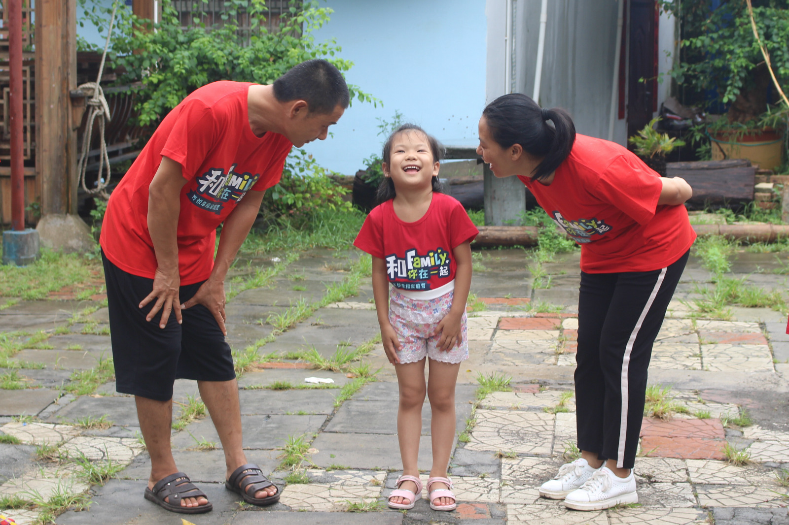 Yuan's playing games with her mom and dad at the family camp.