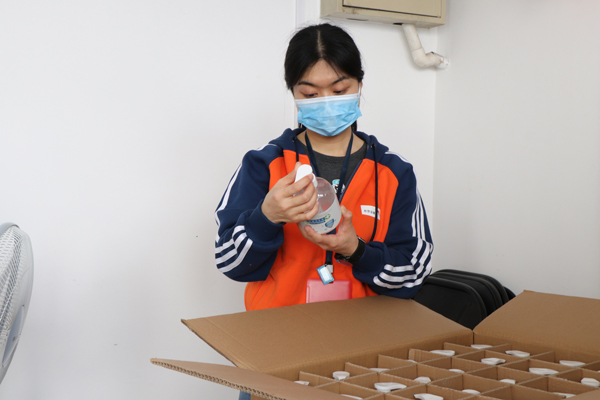 ▲On behalf of World Vision, Huang Simin handed over the protective gear to the partner.