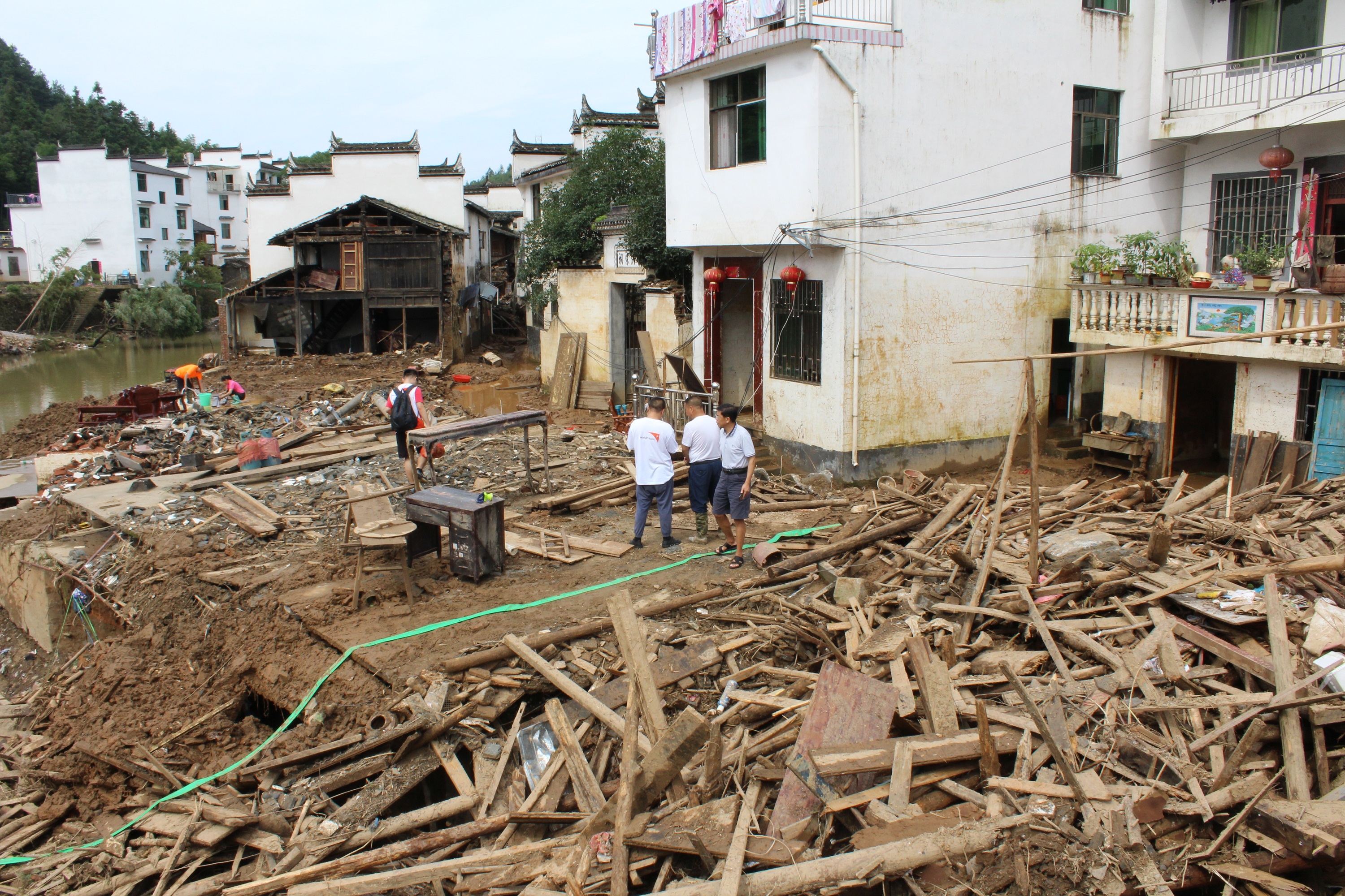 Since June, Wuyuan County was hit by four heavy downpours. This led to floods that caused massive losses in the county. By 11 July, 136,600 people in the county were affected and 64,600 people had to be relocated. More than 20,000 people are in urgent need of living aid. The disaster hit 6096.1 hectares of farmland, leading to an estimated loss of 701.6 hectares of crops. 129 houses were destroyed and 106 houses seriously damaged. The local government acted quickly and began relief and rehabilitation work when the floods started. (Content collected by Li Yunqing, article written by Liao Haizhen)