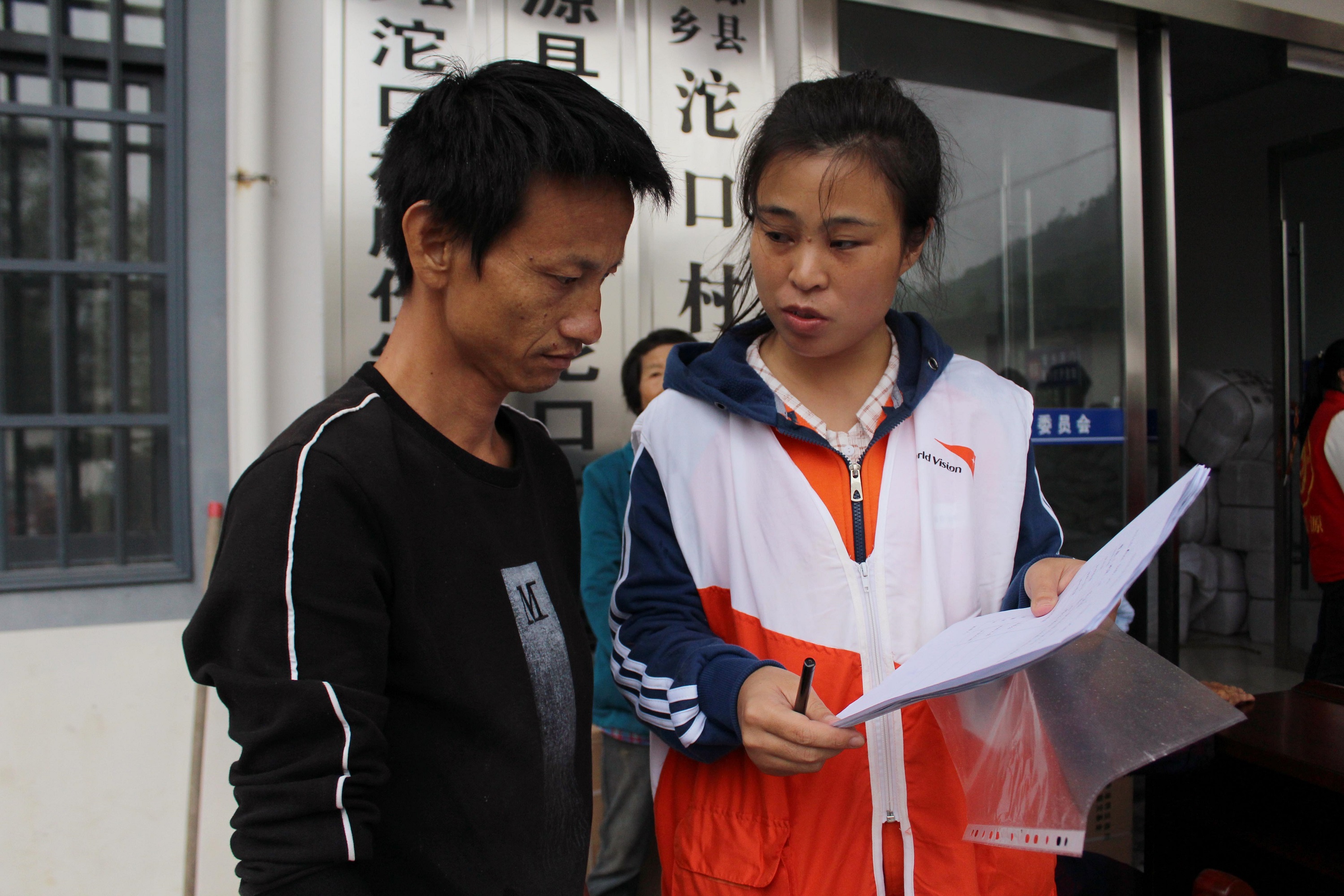 ►A World Vision staff finding out from Guiding about the impact of the flood on his family