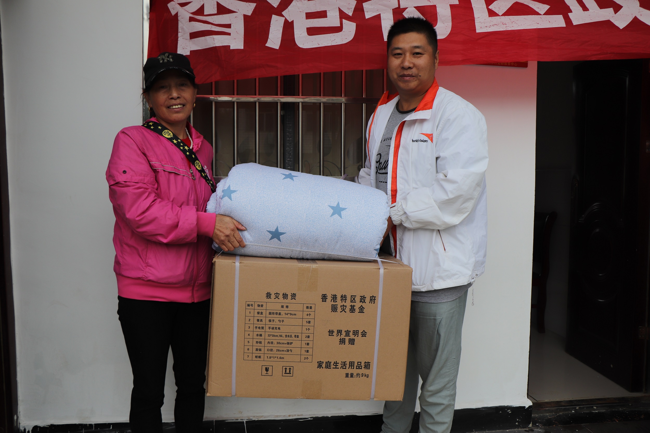 "I got a quilt, a family kit and two bags of rice," Madam He said with a smile. "These things will help us a lot. The water rose to about a meter, and it destroyed our bed and many household items. The weather is getting colder, so this new quilt will be useful. The wok, steamer, water pail, food containers and tableware are also what we need now. I want to thank the donors and our government for their kindness and for sending us these items.”