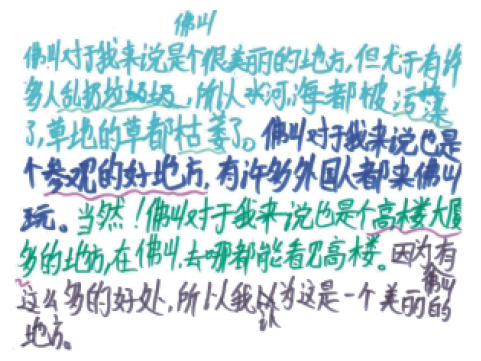 Foshan is a beautiful place for me. However, the river and the sea are polluted, and the grass withered as many people littering. A lot of foreigners come to visit Foshan. Of course, Foshan is also a place filled with tall buildings. Here, I can see them everywhere I go. Therefore, I think Foshan is a beautiful place for me. (Xuefei)