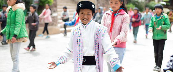11-year-old Xiaolong is a bright boy who lives in a Lisu village in Yulong County, Yunnan Province. Lisu Nationality, a minority mainly live in southwest China, whose people are famous for their skilled dancing and singing. In Xiaolong’s villager, every when big day comes, villagers will gather together, singing, dancing, and playing their special instrument. Growing up under such strong ethnic culture, Xiaolong also likes singing and dancing. "I dance when the music sounds. I like dancing”, said Xiaolong.