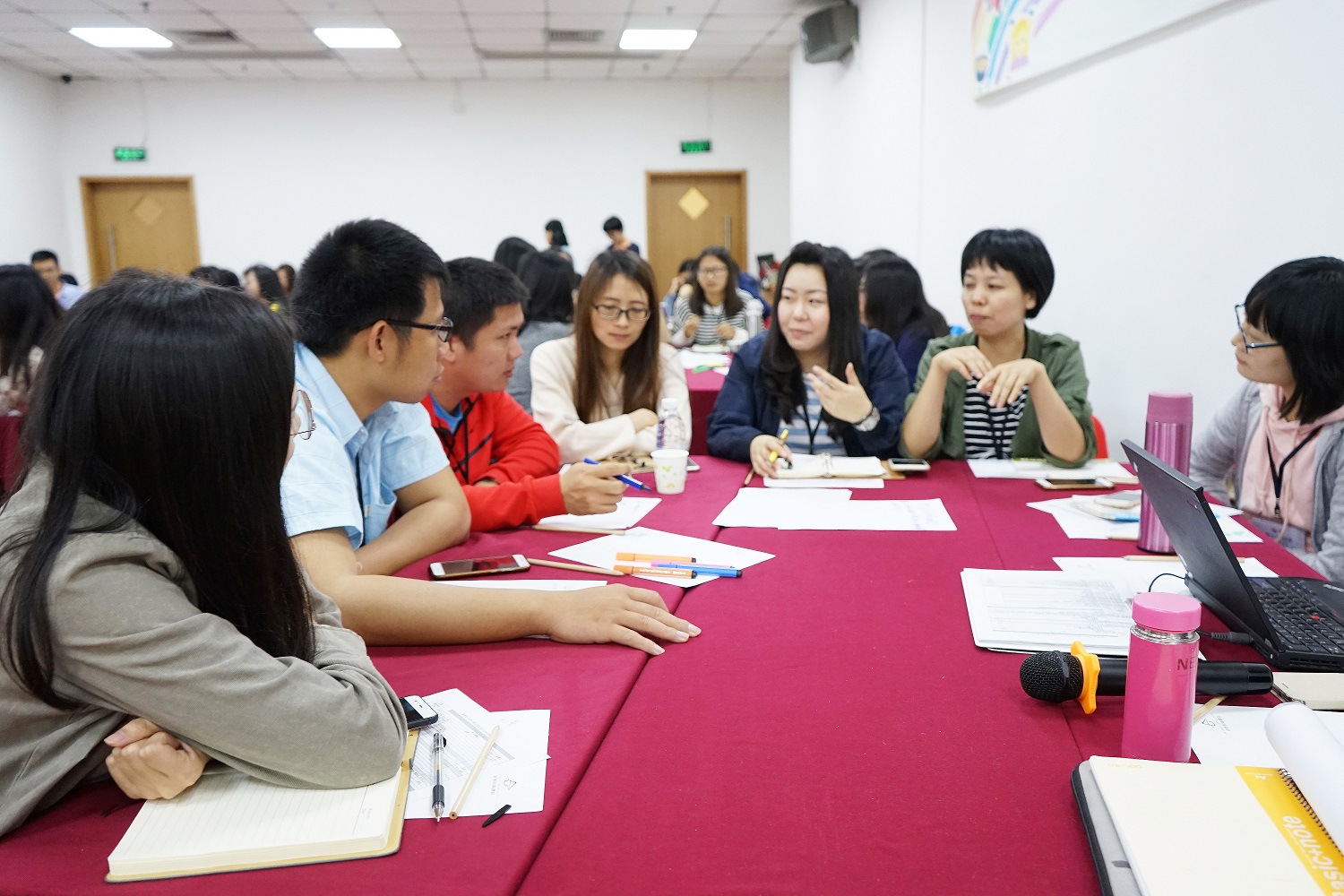 ▲Trainees having group discussion