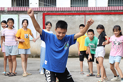 Children’s voices travel from Suichuan County’s village committee building in the Ji’an City of Jiangxi Province. 13-year-old Zhang and twenty-nine children are practicing breathing exercises. They have joined the summer camp co-organized by World Vision, the township government, and the village committee.