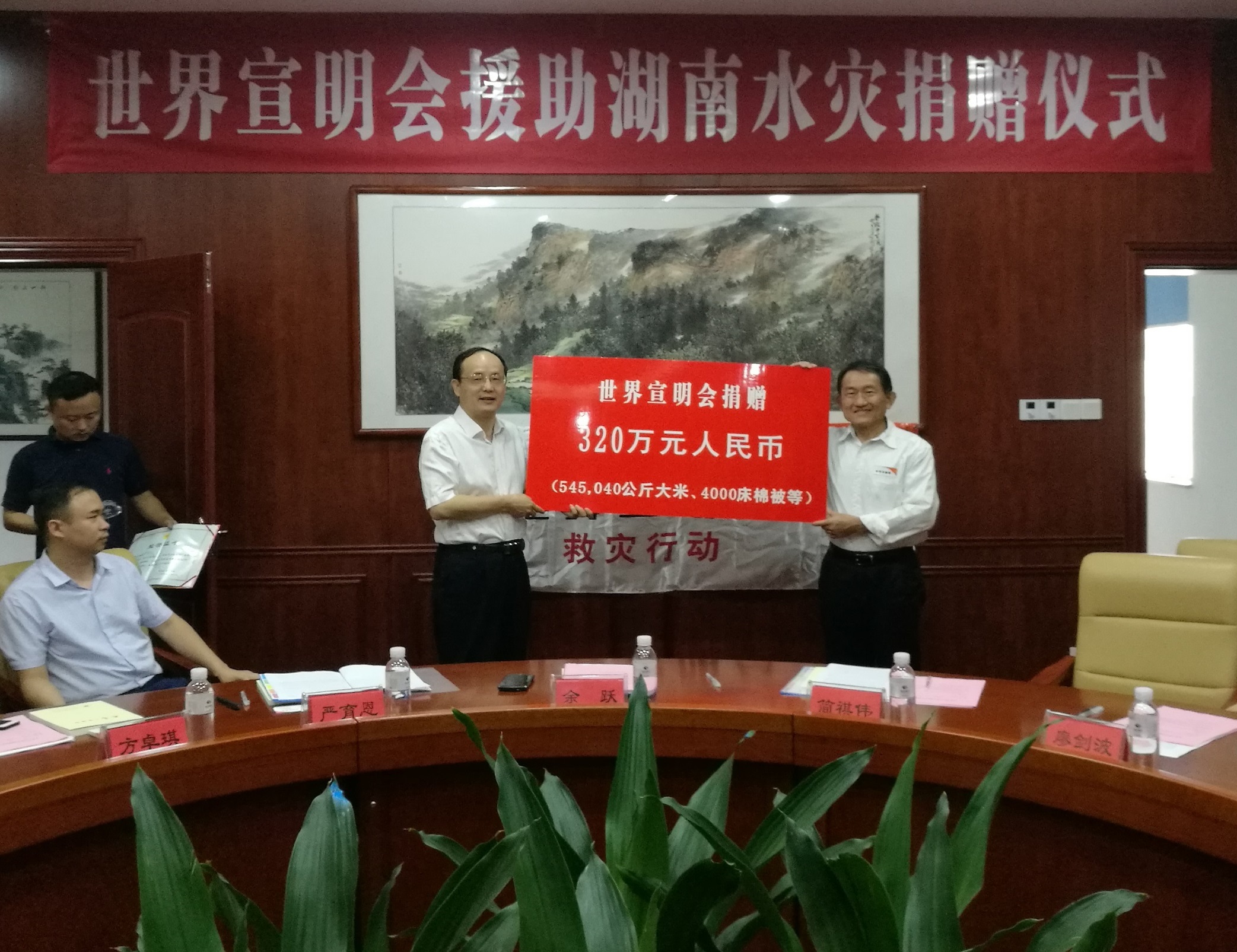 In the ceremony, Yu Yue, deputy inspector of Hunan Provincial Civil Affairs Department, accepted the donation of World Vision on behalf of Hunan Charity Federation, and meanwhile, issued honorary certificate and donation commemorative plaque to Victor Kan, director of the World Vision China Office.