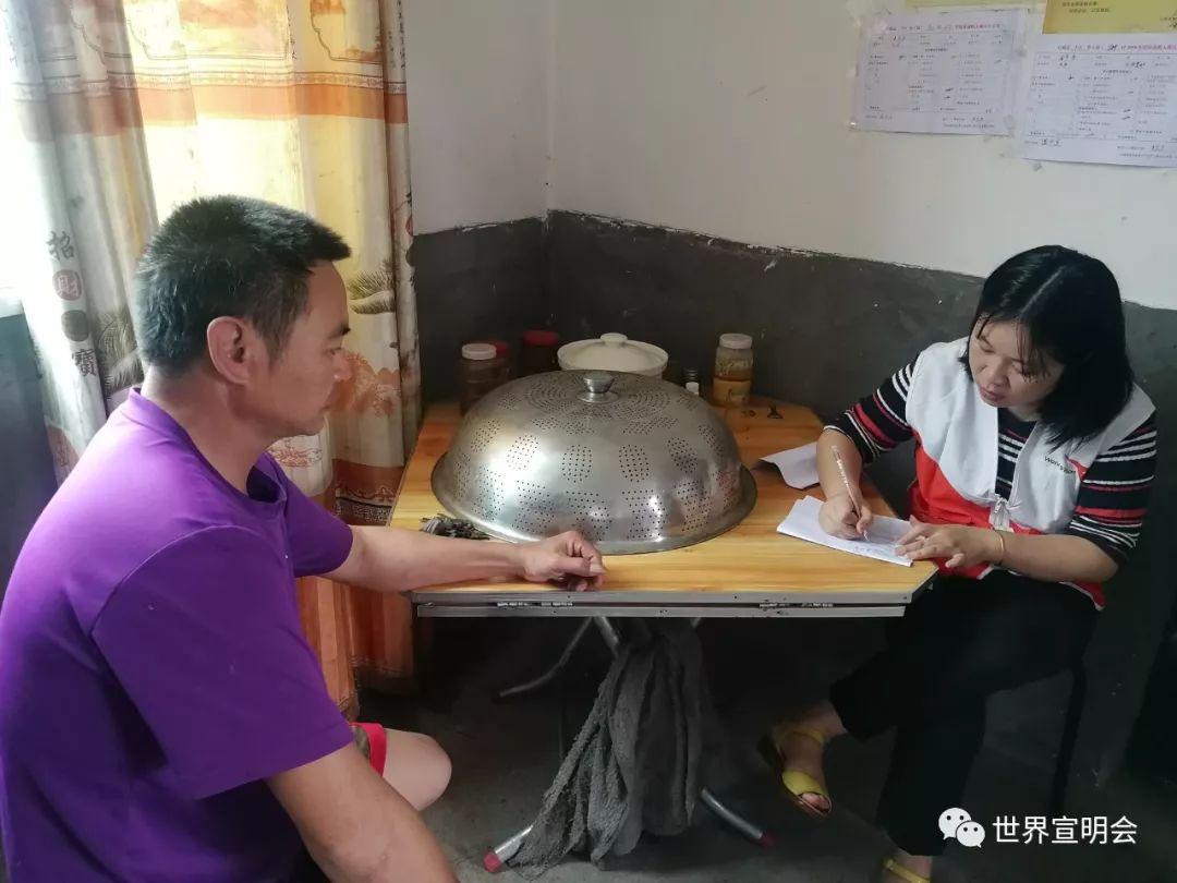 ▲世界宣明会勘灾人员入户调查,询问灾民的需求。