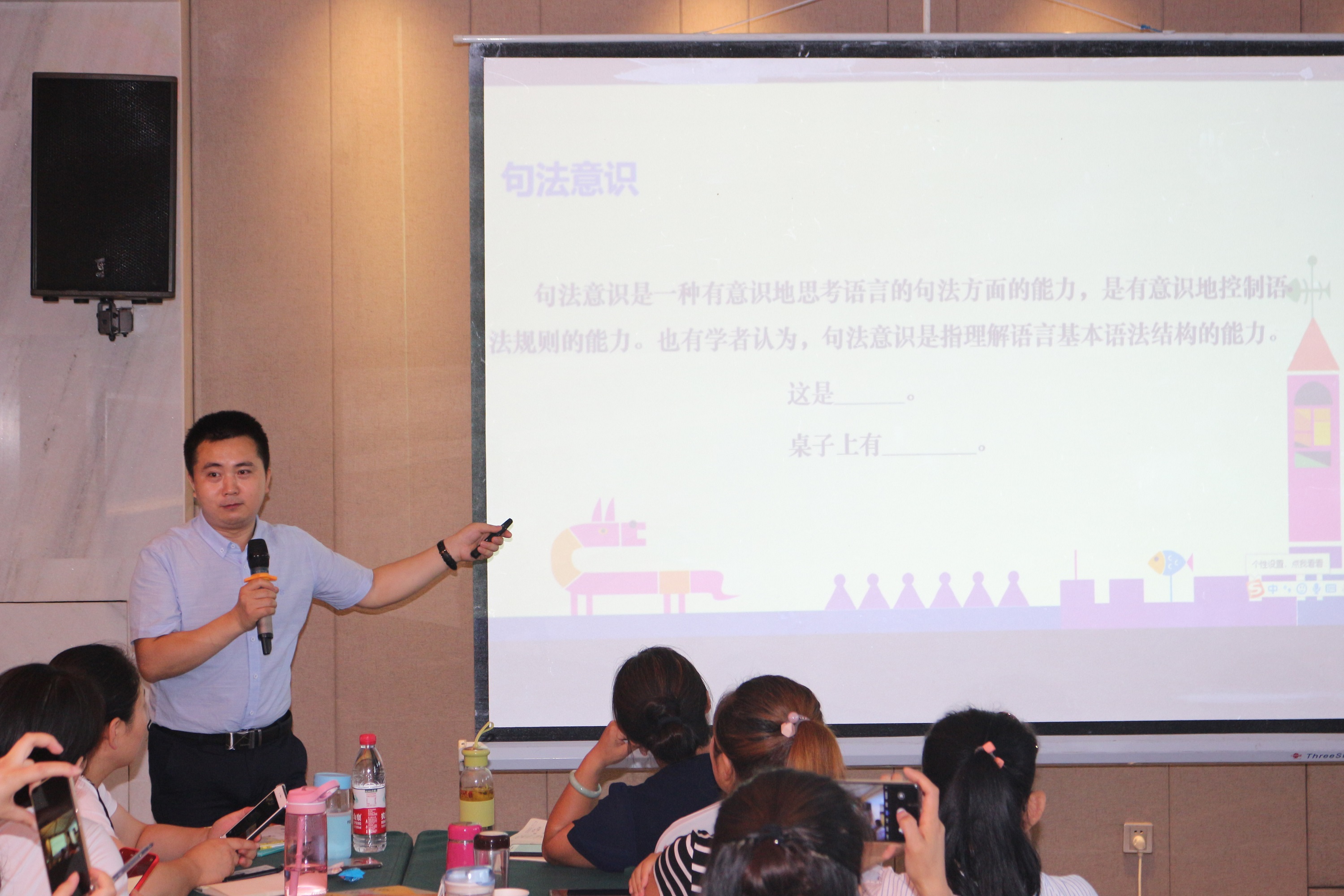▲黄志军老师正在分享绘本阅读注意事项