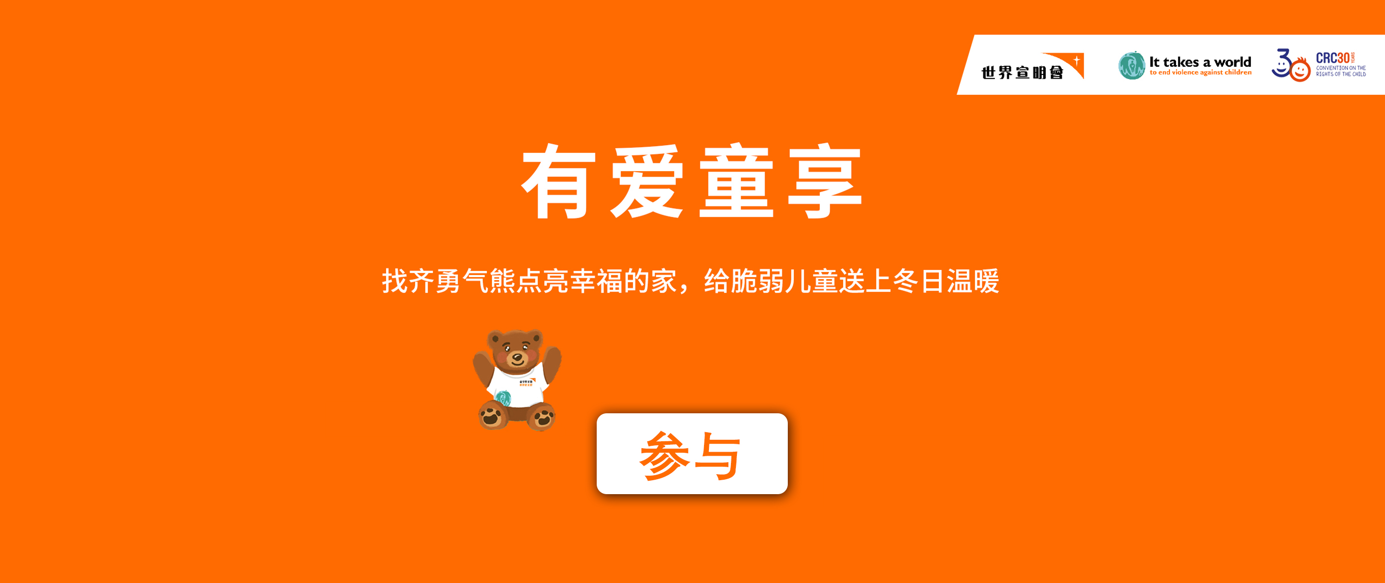 11月20日是世界儿童日,也是联合国《儿童权利公约》通过30周年。为了庆祝这个特别的日子,世界宣明会于11月15日-24日期间推出#有爱童享#系列活动,呼吁大众关注儿童的生存权、发展权、受保护权和参与权,多听听像小尔一样儿童的想法,给予他们更多爱和关注。该活动配合世界宣明会发起的 “童享零家暴”行动,营造有爱和谐的家庭环境和暴力零容忍的社会氛围,保护儿童的健康成长。