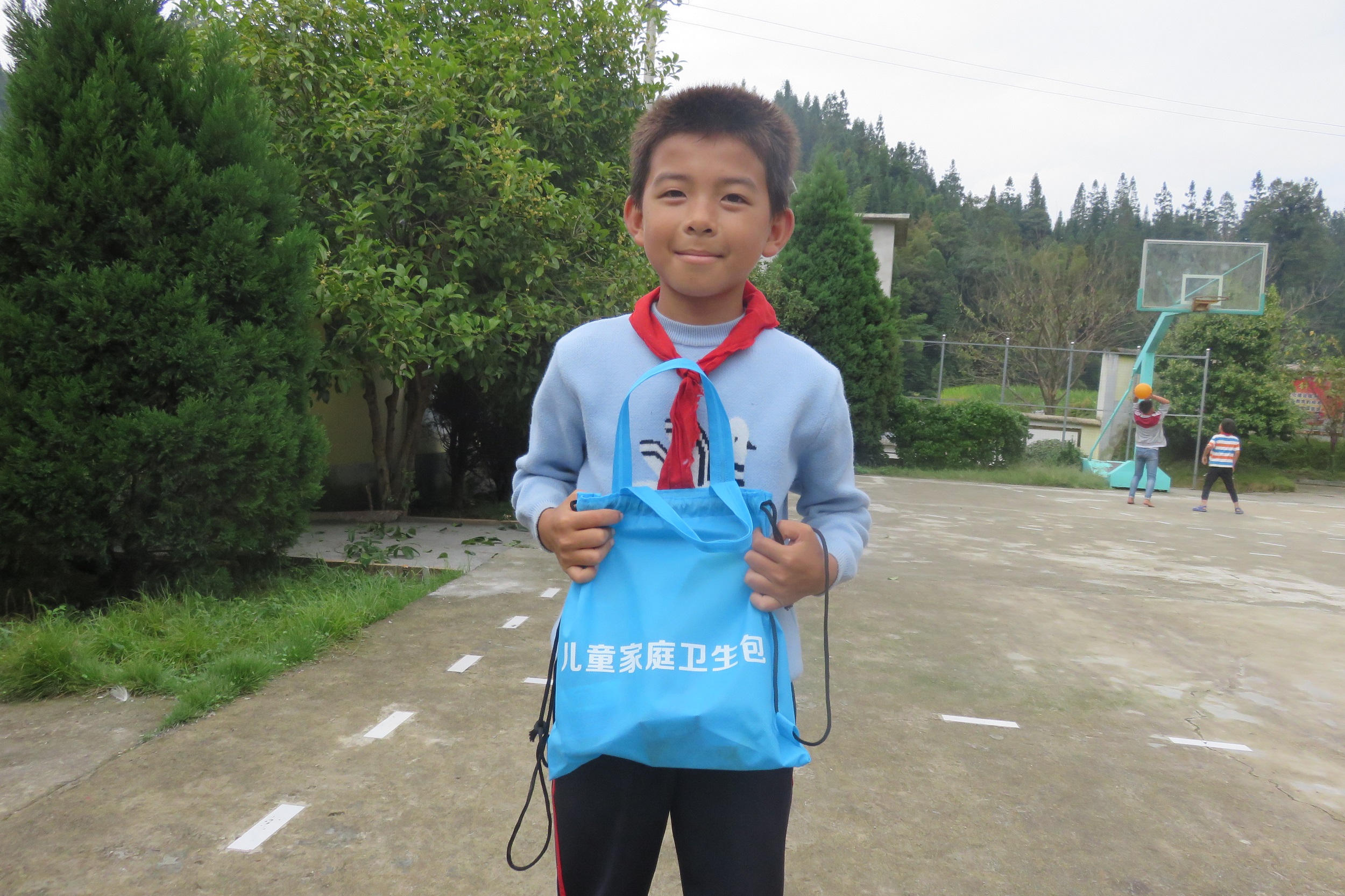 “很开心能领到卫生包,我把卫生包带回了家,奶奶、弟弟、爸爸、妈妈都可以一起使用这些东西,这样他们也可以少生病了。在学校里,老师每天都会用卫生箱里的物品给教室消毒。虽然味道不好闻,但为我们提供了安全的学习环境。很感谢捐赠这些物资给我们的好心人,希望他们也能开开心心的,平安和健康。”小泽说。