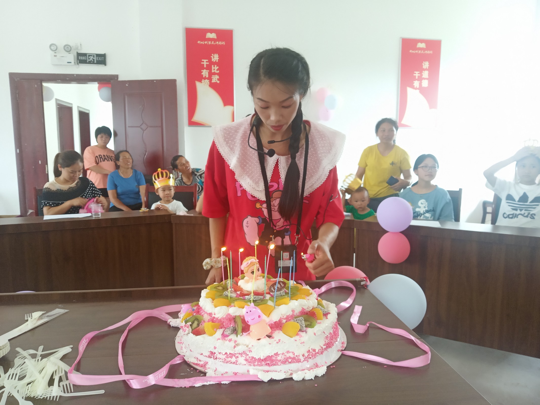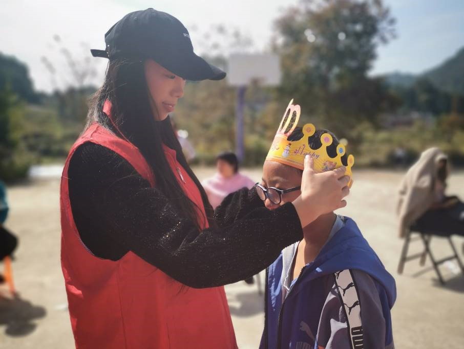 ▲欢姐给过生日的孩子戴生日帽