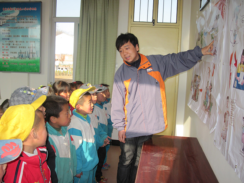 | 高伟东在给孩子们讲解资助童与资助人的联系(2011年)