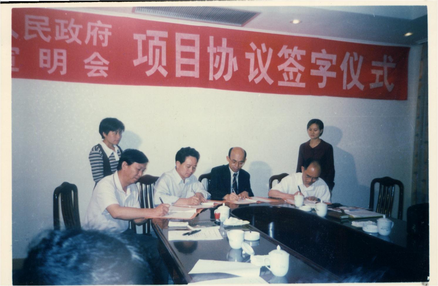 | Toby在1996年永胜项目签字仪式上(前排左三)