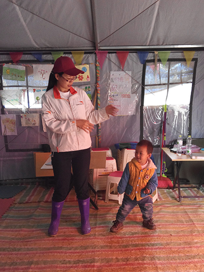| 继凡支援云南鲁甸地震后的救援恢复工作,在“儿童天地”与孩子一同起舞,孩子的快乐多么简单。