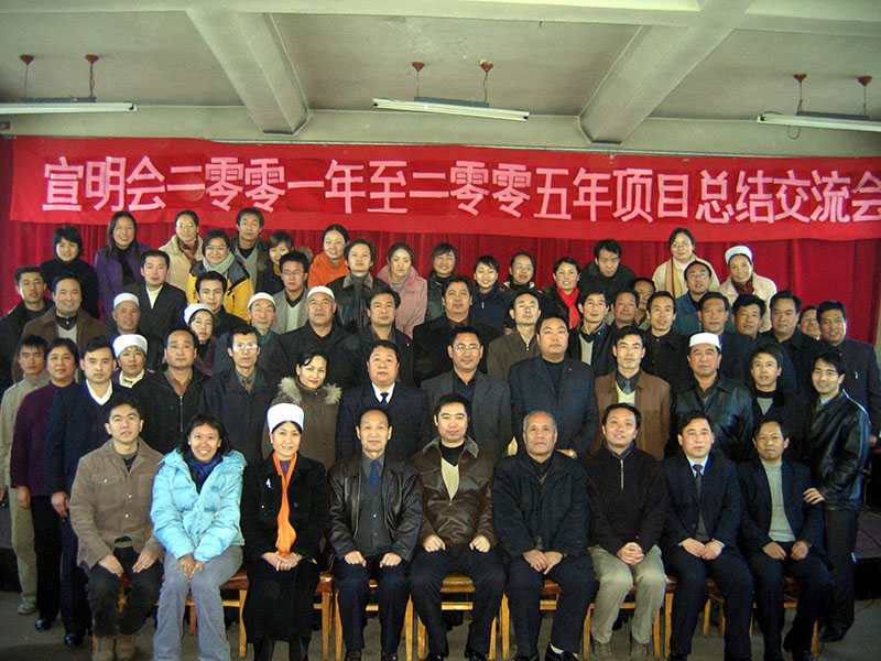 | Aman(前排右三)在临夏、东乡政府与世界宣明会的项目总结会