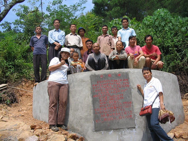 | 田东县饮水工程缓解当地饮水难的困扰,项目得到村民认同,“投工投劳”地参与到建设,图为竣工合影。(农工右一,2006年6月)