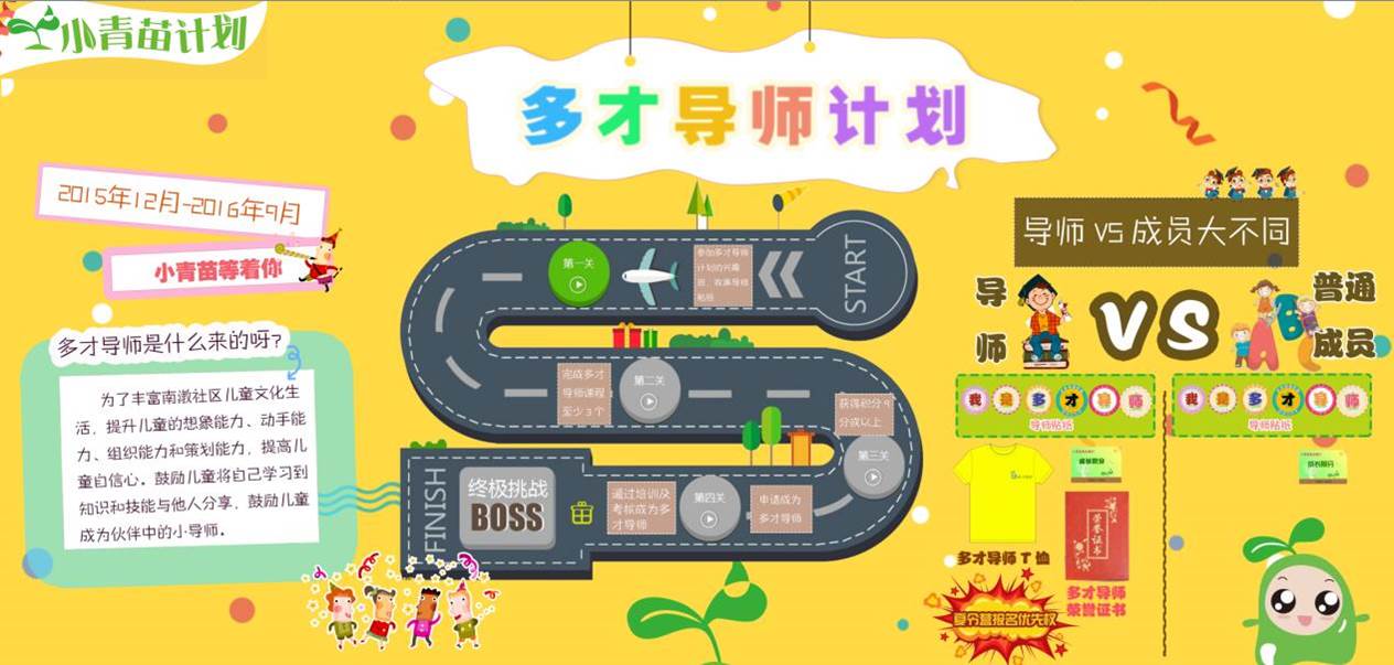 注:“小青苗计划”由世界宣明会与当地政府、社工机构合作开展,2013年11月起向社区儿童提供安全保护、教育提升、社区融入、社区关爱的服务,提升社区流动儿童福祉。至2015年10月,服务超过12,000人次。南漖社区以“小青苗”中心为主体,在2015年成功申报成为广东省“儿童友好示范社区”。