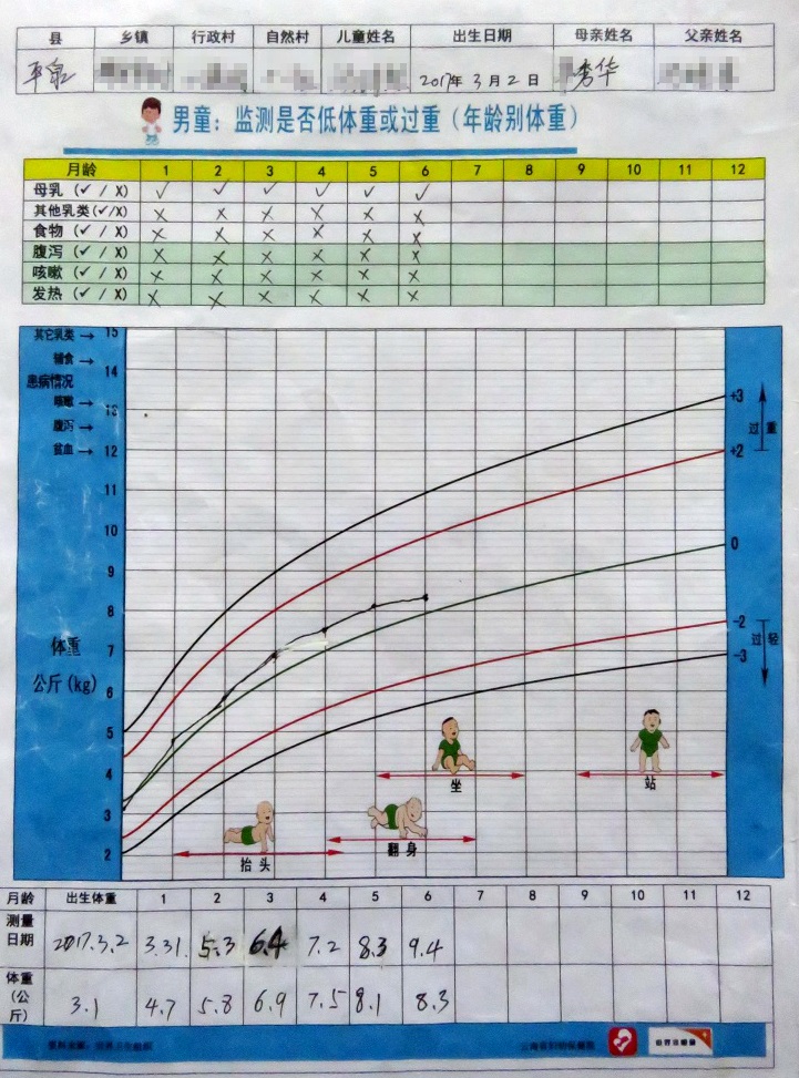 亚娟能够坚持母乳喂养得益于婆婆的理解和支持,亚娟还说:“母乳有营养,我家孩子现在体质很好,不爱生病。我亲戚家的孩子喂奶粉总拉肚子,虽然我不时髦,但我相信科学。”亚娟相信科学,她一方面看到自己孩子在纯母乳喂养6个月时不容易生病,同时也看到孩子的体重一直在最良好体重的范围(图内绿色线与上下红色线之间就是良好营养的范围,越接近绿色线就也良好)。亚娟每次看到孩子的体重良好时,都非常高兴和欣慰,她看到了努力的成果!