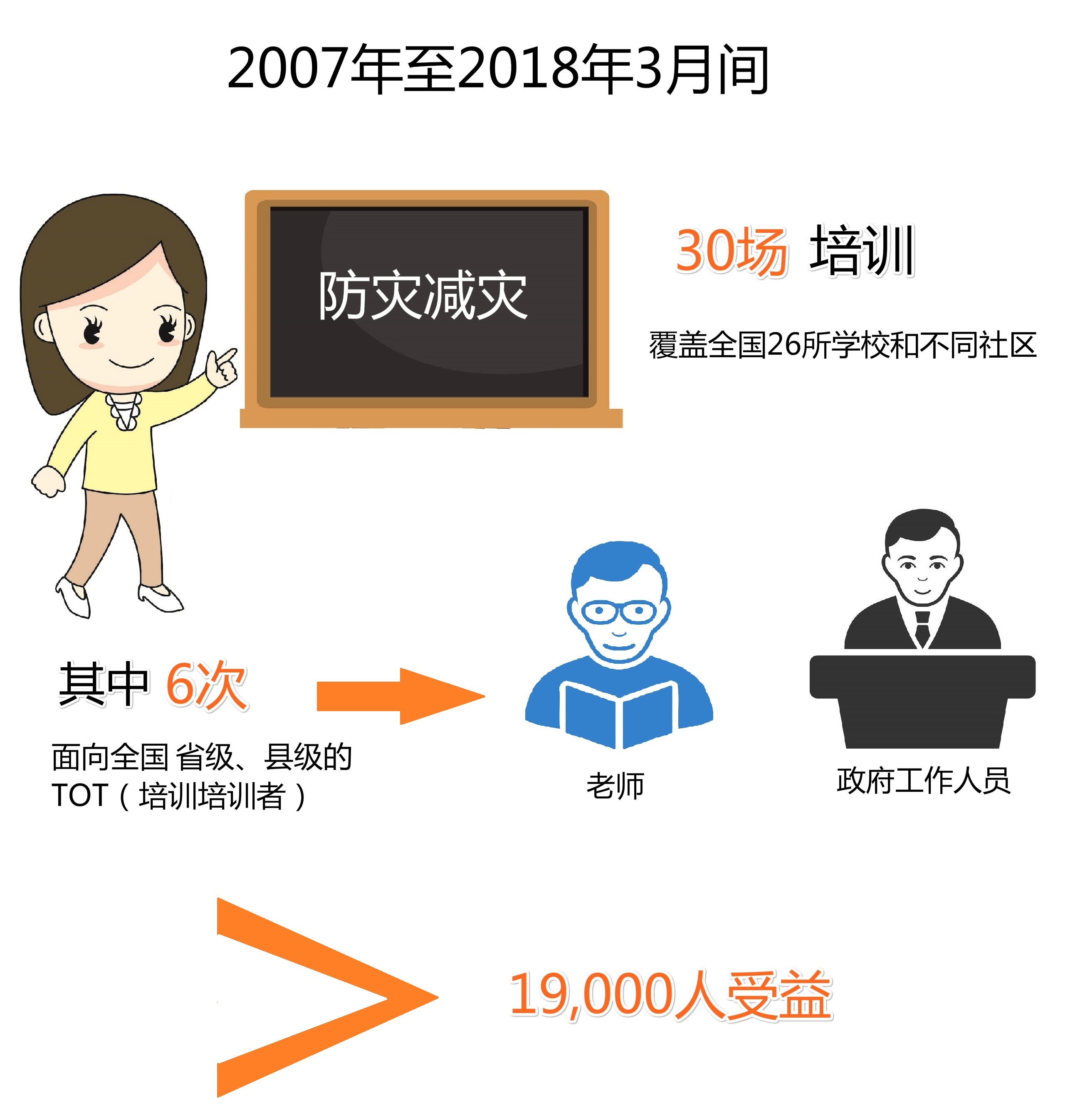 我们也针对社区开展“社区为本防灾减灾”项目。2010年开始在江西、云南、河北、陕西、甘肃、宁夏、新疆、广西、贵州、湖南、四川、云南、青海等13个省市自治区开展。