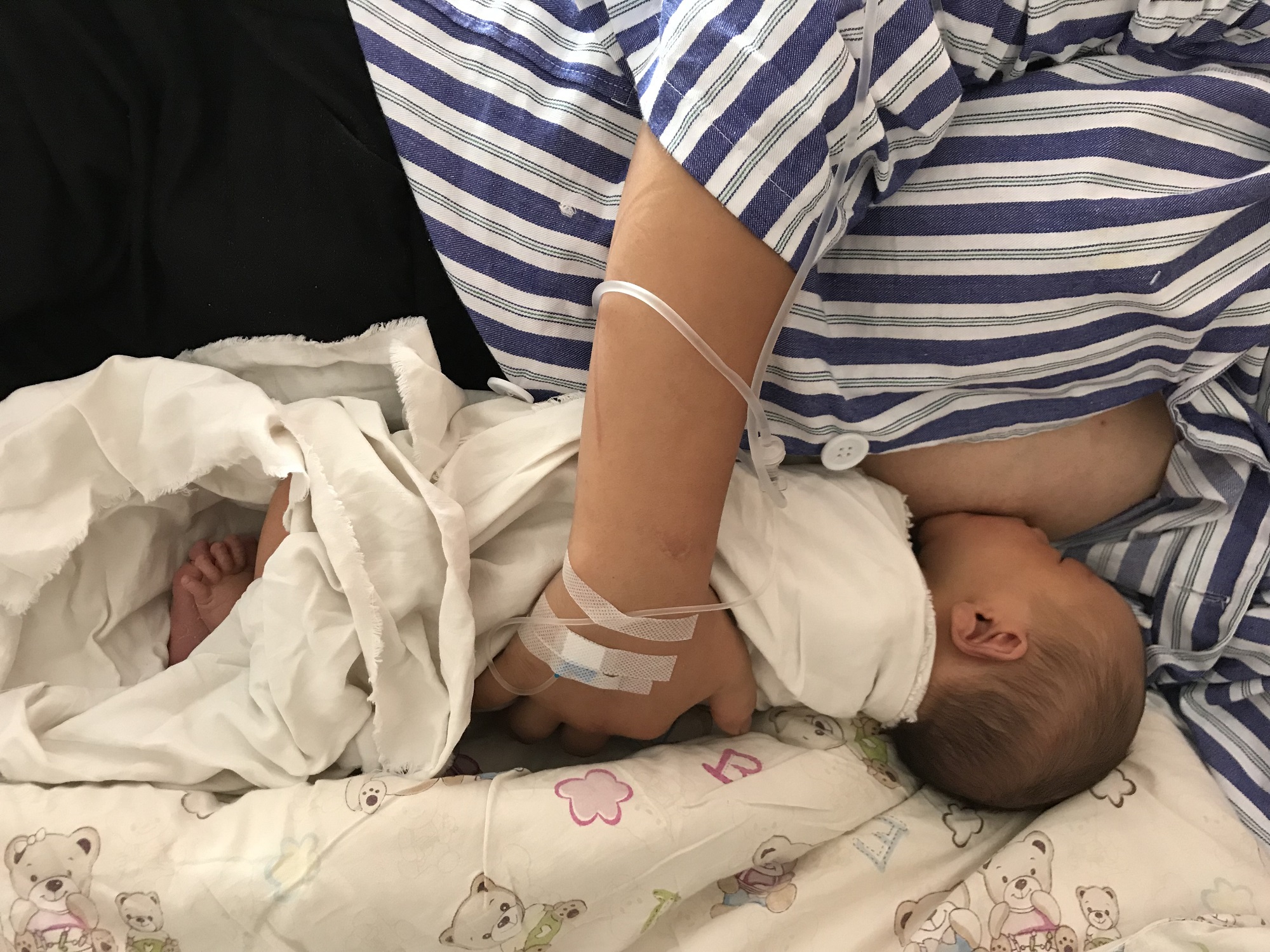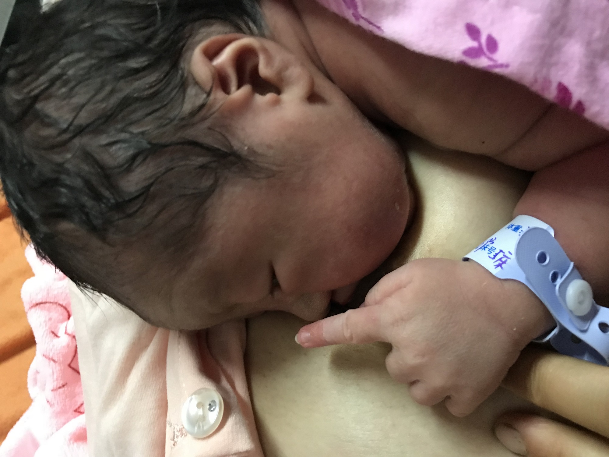 小宝宝在产房就与母亲皮肤接触并且吃上第一口奶(初乳)