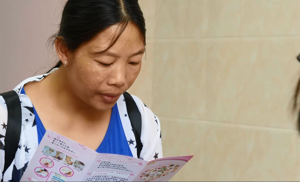 上图中的孕妇(怀第二胎)读了母乳喂养孕妇须知后,说:“读完后觉得挺好的,以前怀第一个的时候,10多年前,自己不知道,小孩哭了就喂,读完印象深刻的就是纯母乳喂养是最好的。”