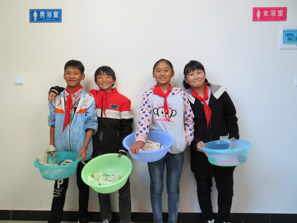 自从学校里有了洗澡间,孩子们再也不用为洗澡问题发愁了