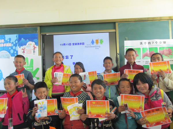 宣明会在小鹏的学校开展了学习洗手的活动,奖状发给洗手最认真的小朋友