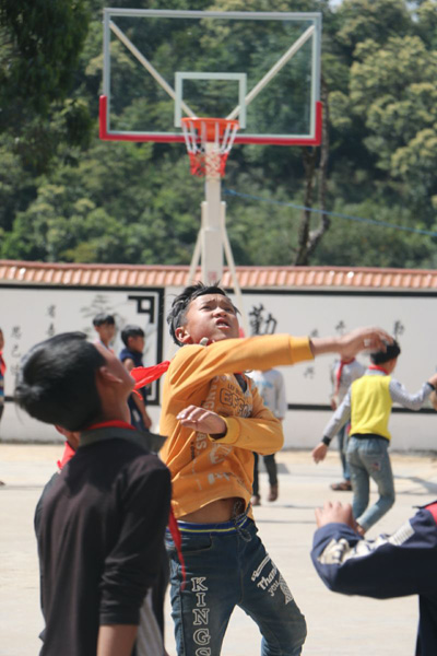 崭新的篮球架给孩子们的校园生活带来久违的快乐
