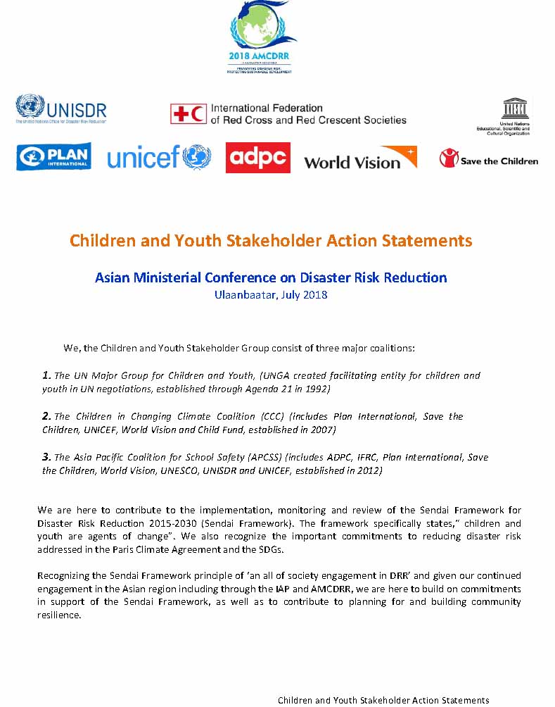 2018年7月2日,世界宣明会代表参加C&Y(儿童及青少年对防灾减灾咨询意见)会议。该会议作为亚洲减灾部长级大会(AMCDRR)的正式会议前活动之一,有16名儿童及青少年代表参加。会议听取他们对防灾减灾工作的回应,以求更好地在灾害中保护我们的儿童。